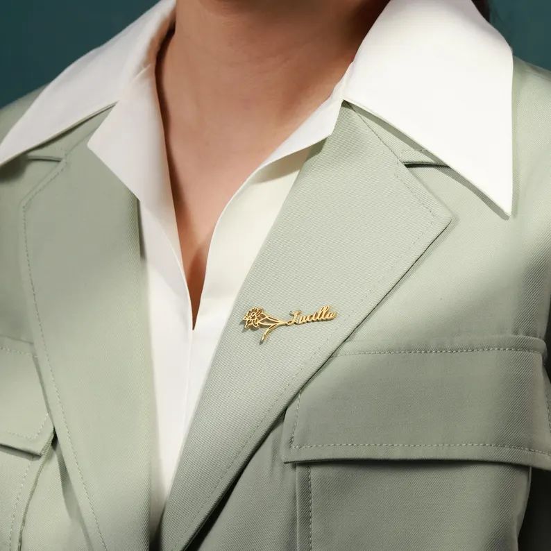 A symbol of love, grace, and individuality. Our personalized rose name lapel pin features a delicately crafted rose paired with a custom name in elegant script. Designed to add a refined and feminine touch, this piece complements blazers, dresses, sarees, and formal wear effortlessly.